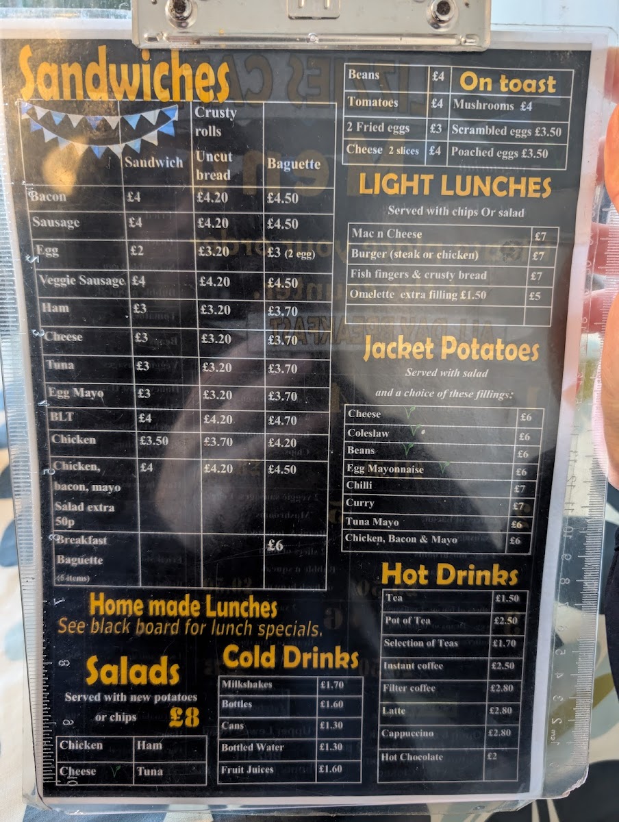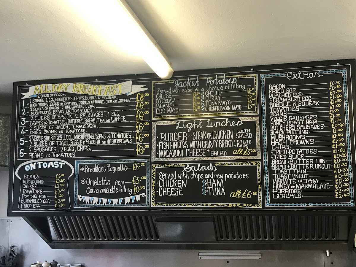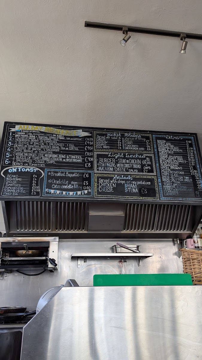 The menu features classic options like a warm English Breakfast and toast topped with beans, mushrooms, or eggs, making it easy to find something to suit your morning routine or midday pause. There’s also a variety of hearty jacket potatoes with fillings ranging from cheese and coleslaw to chilli and chicken, perfect for a satisfying bite any time you need a little more fuel.